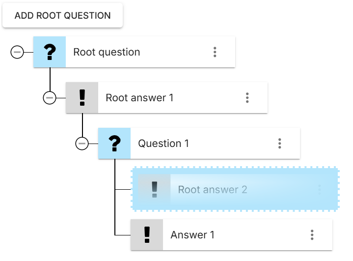Es ist auch möglich, **Fragen und Antworten im Baum neu zu organisieren** indem Sie die Drag-and-Drop-Funktion verwenden: