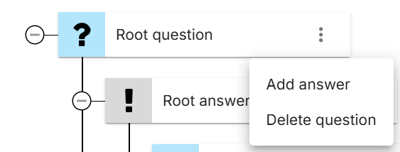 Anstelle des Platzhalterbaums erscheint eine leere Wurzelfrage und eine leere Antwort dafür.